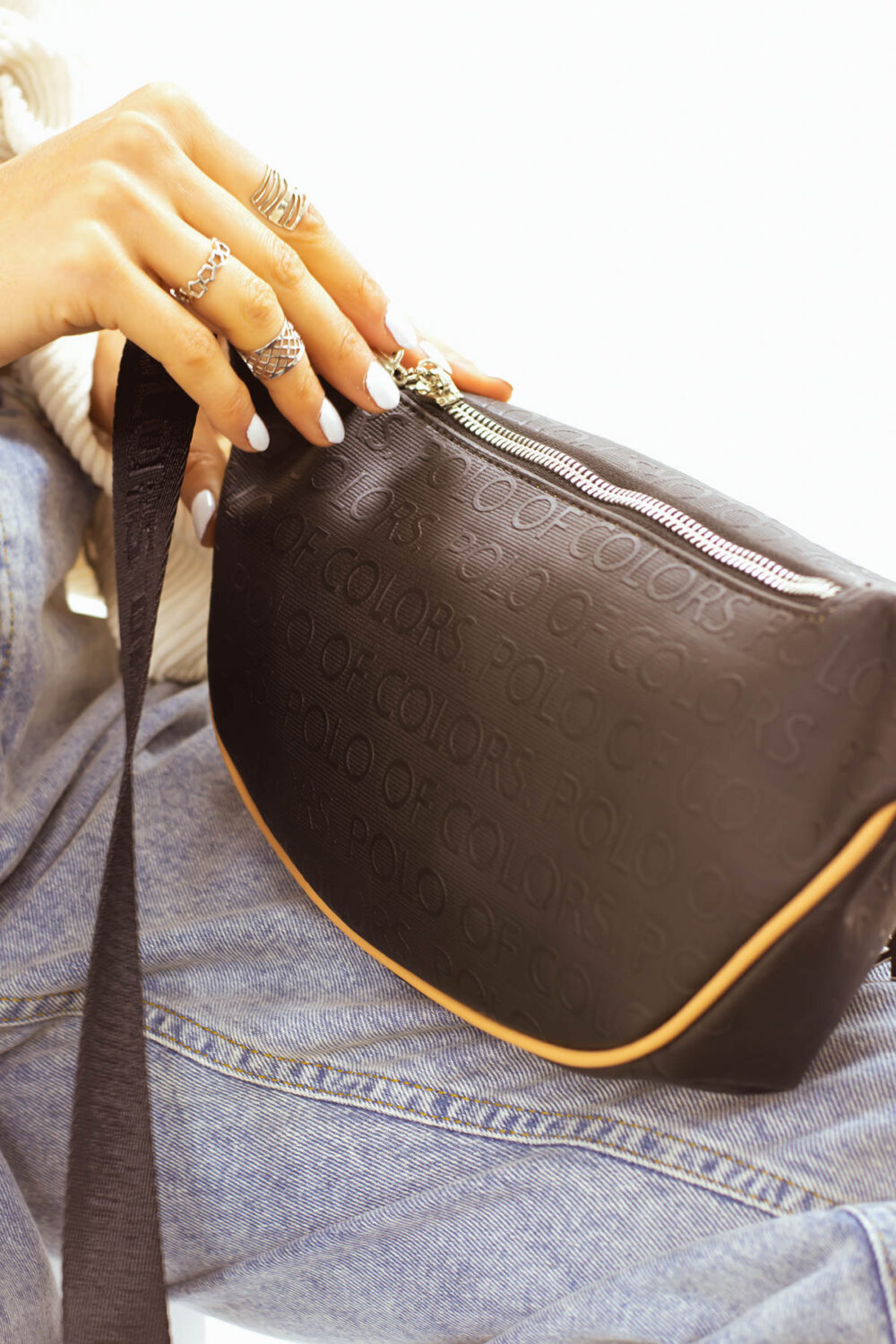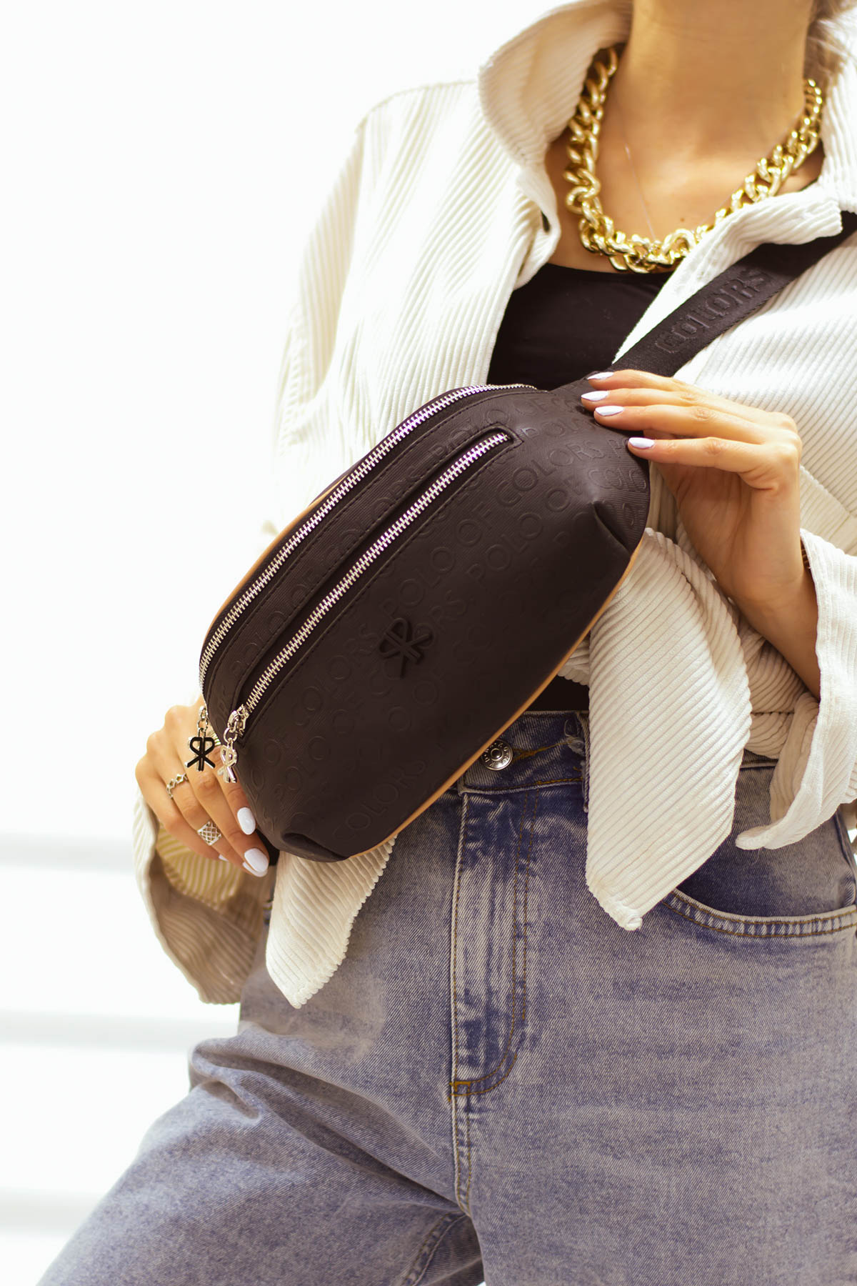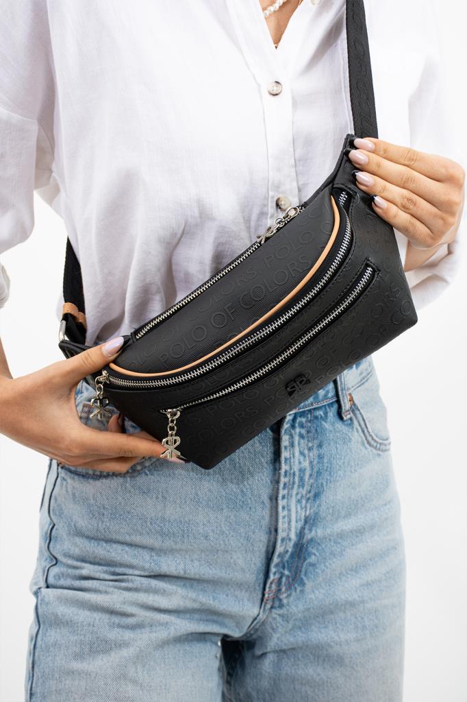İmpolo Miya SiyahTaba Gofraj Baskı Spor Kadın Bel Çanta 17×40 ebatında