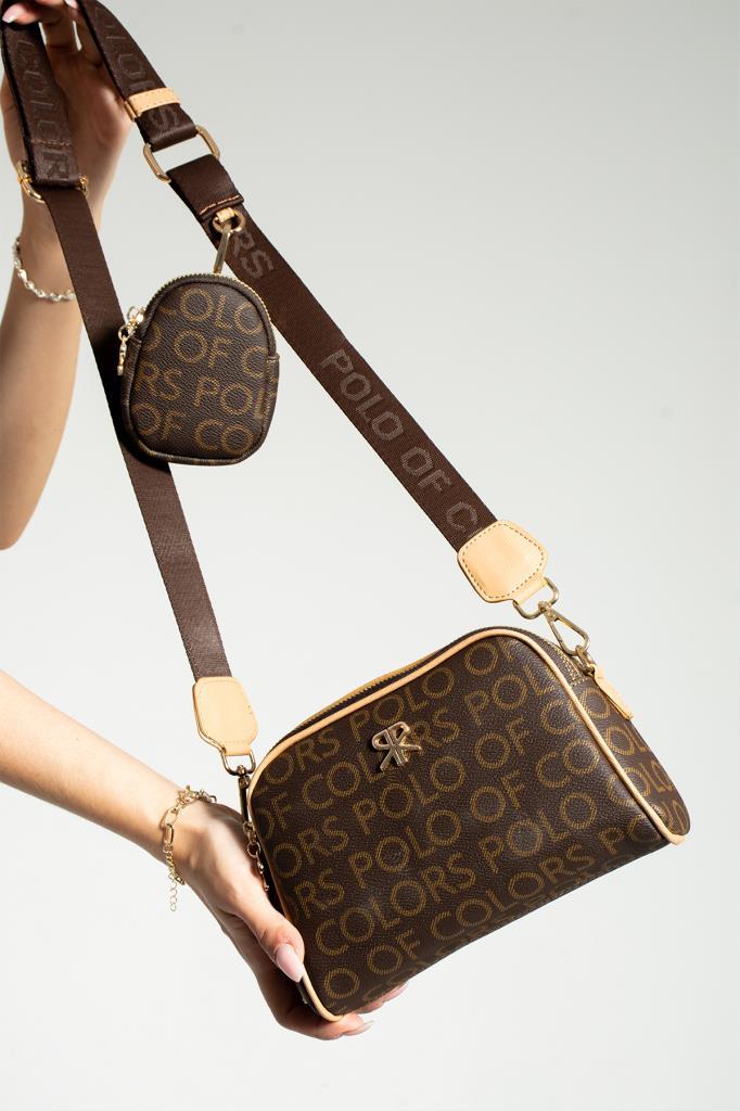 İmpolo Adela Kahve KamelEmpirme Baskı Omuz Ve Çapraz Kadın Çantası 15×21 ebatında