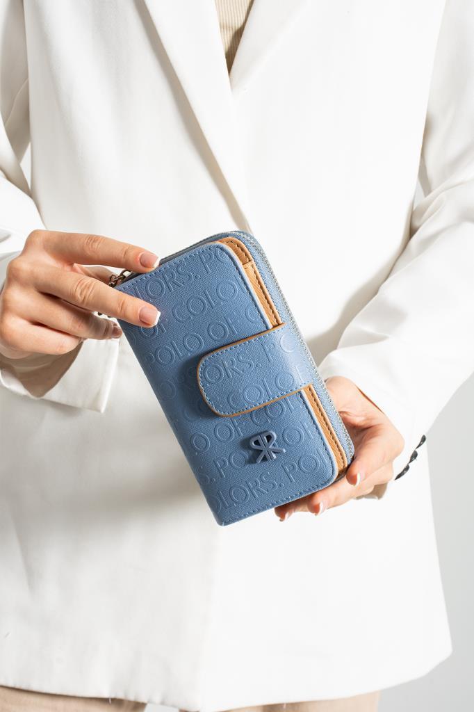 ImPolo Nili BeBeMavisiTabaGofraj Baskı Kadın El Cüzdanı 10×17 Ebatında